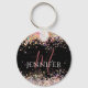 Elegant Trendy Holographic Glitter Monogram Name Black keychain