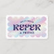 Trendy Refer A Friend card with retro fonts and holographic effect background with scalloped edge. The background features pink and purple gradient hue with space for your logo and business details. Create modern referral business cards for any business services such as makeup artist, lash tech, nail artist tech, hair stylist or any other business.