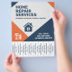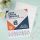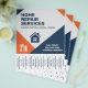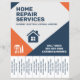 A professional home repair services flyer with tear off strips with a clean, modern design featuring bold blue and orange accents, accompanied by a house-shaped icon, all on a grey background with subtle geometric patterns.