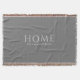 There is really no place like home, and this personalised throw blanket celebrates the comforts of home. Personalise your living space with this unique custom design in rich medium grey. Contrasting light grey type face has the word "HOME" in modern large lettering with your address below. Personalise the text with your address. This item makes a wonderful gift or treat for yourself.