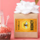 Honey bee icon at the centre of a hexagonal honeycomb pattern in golden honey colours to create a set of vertical honey jar labels. Featuring modern style typography and customised text for the beekeeper name, contact information and type of honey - using one or 2 lines of text for Orange Blossom and other sources of nectar..