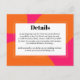 A bold and beautiful wedding enclosure card with a modern retro vibe in a vibrant colour scheme of hot pink and orange. This colourful card used for providing special details to your guests has a designer look with bright orange rounded shapes over a hot pink background. The text template in contemporary crisp type face with a retro vibe and carries out the theme beautifully.