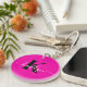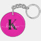 This modern hot pink keychain with your first name in a trendy script font in white and your first initial in a modern cap font in black is perfect for your keys. It's stylish and modern and yet very classic.