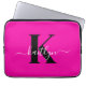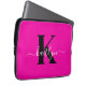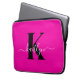 Modern Hot Pink Black Script Monogram Laptop Sleeve
