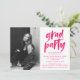 Invite guests to celebrate the grad with our photo graduation party invites! The modern graduation party invitations feature the graduate's vertical photo. "Grad Party" is displayed in a hot pink painted brush font. Personalise the front of the invite by adding the graduate's name, school name, graduation year, and graduation party details. The invite reverses to display your graduation party details with a hot pink and white brush stroke background.