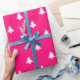 Modern hot pink fuchsia white Christmas trees Wrapping Paper