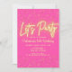Modern Hot Pink Neon Glow Let's Party Birthday Invitation