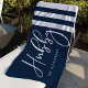 Modern Hubby Script Nautical Navy & White Stripes Beach Towel