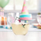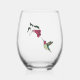 This beautiful stemless wine glass features a hand-drawn hummingbird visiting a Bignonia flower in black ink.