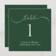 Modern Hunter Green Script Wedding Table Number sign to create a fun modern table setting for a classic wedding. Personalise it on the front and back.
