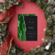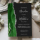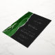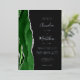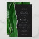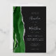 The left-hand edge of this elegant modern wedding invitation features a hunter green watercolor agate border trimmed with faux silver glitter. The customizable text combines handwriting, copperplate and italic fonts in real silver foil on an off-black background. The reverse side features a matching green and silver agate design.