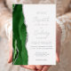 The left-hand edge of this elegant modern wedding invitation features a hunter green watercolor agate border trimmed with faux silver glitter. The customisable text combines handwriting, copperplate and italic fonts in real silver foil on a white background. The reverse side features a matching green and silver agate design.
