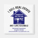 Stylish Realtor Referrals magnet. The image shows a BLUE house with white typography. The O of HOME is replaced with a key. At the bottom, you can add your name, company name and contact details, or a personal message to your client. ALL TEXT IS FULLY CUSTOMIZABLE so you can personalise the wording to suit your requirements. The text reads I SELL REAL ESTATE and CONGRATS ON YUR NEXT NEW HOME with optional Joshua 24:15 Bible verse - As for me and my house, we will serve the Lord. At the bottom the text continues AND I LOVE REFERRALS. Ideal for promotional branding. Also comes in red.
