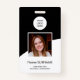 Personalised employee id card - identification modern minimalist elegant black and white badge with your custom company logo, photo, name, title, QR code or barcode, and other details - if needed. +++++++++++++ Easy to personalise with your info on both sides! +++++++++++++++ Suitable for corporate employees, managers, executives, accountants, business office staff, warehouses, retail and logistic companies. +++++++++ Please note that the background colour, fonts, and sizes of text can be changed. You can upload a scanning QR code or bar code or add any other text on the backside.