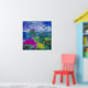 Impressionist painting of a lovely green pasture by the sea, with interesting textured trees on green rolling hills, against a blue sky with misty clouds and abstract violet and red shapes in the pasture and in the trees.  There appears to be a flying figure in the sky.   Inspired by and reminiscent of Chagall.  Available in various sizes.