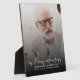 Modern "in loving memory" desktop plaque on an easel stand, featuring a photo of the loved one who has passed away, the words "in loving memory" in handwritten script, your loved one's name and their dates of birth and death. If you need any help with customisation, please contact me using the message button below and I'll be happy to help.