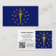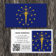Business Cards: Modern Indiana business card featuring flag of Indiana on one side and your details together with scannable QR Code, small Indiana flag on the other side. Easily customise link in QR Code for your website or mobile number, personalise name, address details or change flag on the side for your company logo, personal photo or any other image. Make it your business or just card for moving house.