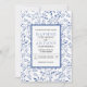 Modern indigo blue leaves pattern wedding invitation
