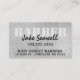 Modern, urban, hipster barber / barbershop biz card features industrial stencil style font and a grungy grey background.