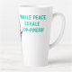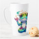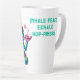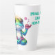 Inhale Peace, Exhale Hop-Piness funny, cute frog is practicing meditation and reflecting on the importance of just breathing. Colourful in green and pink, on a latte mug.