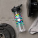 Inhale Peace, Exhale Hop-Piness, funny, cute frog is practicing meditation and reflecting on the importance of just breathing. Colourful in green and pink, on a water bottle.