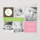Sweet and full of charm, this modern photo birth announcement is the perfect way to introduce the newest member of your family. Personalise the rear side of the postcard with your return address for easy mailing. Custom colour available upon request.