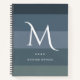 Modern Initial Horizontal Blue Grey Stripes Notebook