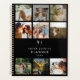 Trendy simple personal stationery 2025 annual planner. Design features a modern monogram layout and 9 photographs of your choice. Annual planner (12 months) with open monthly overviews and weekly planning sheets. The black background can be changed to any colour using the 'edit further' tool.