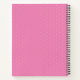 Girly personalised notebook featuring a pretty pink background, a cute polka dot pattern, your initial, and name in a elegant script font.