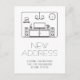 Let friends and family know your new address with these minimalist moving announcements. A black and white line drawing of a modern interior with entertainment centre and house plants appears above the words "New Address" in deco-inspired font. Add your name and new address below.