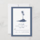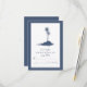 A modern beach wedding rsvp featuring an illustration of an island with two palm trees. Illustration, text, and border are dark blue. Look for matching items such as invitations and save the dates at Jill's Paperie.