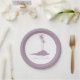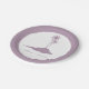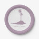 Plates featuring an illustration of two palm trees on an island. Personalise with your names. Design is violet. Look for matching wedding invitations and more at Jill's Paperie.