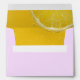 This Modern Italian Summer Wedding Envelope was designed to add a touch of elegance and charm to your special day. This stunning envelope features a beautiful shade of lavender on the outside, exuding a sense of romance and sophistication. Once opened, it reveals a delightful interior adorned with a vibrant slice of lemon set against a cheerful yellow background, perfectly encapsulating the spirit of a sunny summer celebration.
