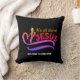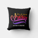 Modern IT'S ALL ABOUT JESUS Christian Easter WELCOME Throw Pillow with CUSTOMIZABLE TEXT. The design shows a combined heart and cross in colourful typography against a rich black background. The wording WELCOME TO OUR HOME is CUSTOMIZABLE and you can ADD YOUR NAME or your church name. You can also change the background colour to suit your decor and furnishings. This inspirational Christian Easter Throw Pillow would be a great addition to your home or church decor.