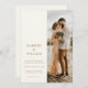 A simple modern wedding invitation featuring your personalised photo, bold typography names, ivory tan colour and minimalist design.