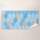 Bring a touch of serene coastal elegance to your bathroom with this beautiful towel set. Featuring a contemporary take on the traditional Japanese Seigaiha (ocean wave) pattern in vibrant cerulean blue and crisp white, accented by a minimalist peach-toned rising sun. Perfect for those who love Zen aesthetics, nautical themes, or modern geometric art.