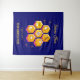 Modern SHANA TOVA Jewish New Year Tapestry designed with seasonal symbols inside hexagons to celebrate ROSH HASHANAH. At the top the greeting reads SHANA TOVA and bottom is the New Year greeting in Hebrew text. Both of these are CUSTOMIZABLE so you can create your own text, eg. add L'SHANAH TOVAH if preferred. You can also add your name or name of your organisation, making this ideal for home or public use. This modern stylish Jewish New Year Wall Hanging would make a great addition to your Rosh Hashanah celebrations. Choose from a wide selection of Rosh Hashanah cards, home decor and gifts designed by Berean Designs. Also in blue.