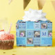Create your own 3 photo collage wrapping paper with this modern JOY TO THE WORLD template design in chic shades of icy light blue for Christmas that is anything but blue. Add your photos to the multi photo templates framed in thin borders of classic medium blue. Then personalise your monogram initial in azure and light denim blue and add your name in bright sapphire and cornflower to the holiday greeting on colour blocks of light sky blue and pastel blues . Set on a soft cornflower blue background with JOY TO THE WORLD in a fun mix of lapis and denim blue letters, this custom holiday gift wrap featuring your favourite pictures and personalised text in a cool festive scatter print pattern will look retro modern and quite delightful under the Christmas tree.