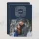 Send your family and friends a beautiful Modern Joy holiday photo card. The elegant photo card features a solid navy background, the word "Joy" inside a faux silver foil vintage frame, and placeholder for text and a photo.