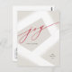 This non-photo holiday postcard features modern calligraphy and a tan, red, and white color palette. The word "joy" is written across the card in red script lettering, with an abstract white snowflake behind it. You can customize the "Season's greetings" below the word "joy" and add your names for a personalized card. On the back, there's room for a longer message to recipients.