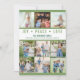 Modern Joy Peace Love Photo Collage Green Holiday Card