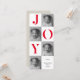 "Spread holiday cheer with this modern ‘JOY’ photo Christmas card, featuring bold red typography paired with black-and-white family photos. The clean collage layout and personalised message make it a stylish yet heartfelt way to share your love this season. Perfect for families, couples, and anyone wanting a festive holiday card with a modern twist."