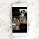 Modern holiday card featuring the phrase "Joy to the World" in elegant white script with a black background. The front of the design features 4 of your favourite family photos arranged in a collage-style layout. Personalise the front of the multi-photo holiday card with your family name and the year. The card reverses to display an additional photo.