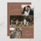 Modern holiday card featuring the phrase "Joy to the World" in elegant white script with a mocha brown background. The front of the design features 3 of your favourite family photos arranged in a collage-style layout. Personalise the front of the multi-photo holiday card with your family name and the year. The card reverses to display an additional photo.