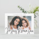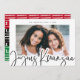 This modern Kwanzaa photo card features a large calligraphy script greeting in black over a white background and a single horizontal photo. The greeting on the front says "Joyous Kwanzaa". The backer features the colours of the Kwanzaa flag (red, black, green) and a white mudcloth pattern. The mudcloth pattern and/or the colour backer can be removed if desired. This design is modern yet elegant.