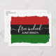 Modern JUNETEENTH Postcard with Pan African flag colours and FREE INDEED and JUNETEENTH in modern typography. The design is inspired by the Christian Bible verse from John 8:36 - He who the Son (Jesus) sets free is free indeed. The red, black and green flag has a ragged edge. The word Juneteenth is CUSTOMIZABLE, so you can replace or add your name or create your own text. This stylish Juneteenth postcard would make a great greeting for African Americans and Caribbeans and anyone who celebrates Juneteenth, and also Black History Month, etc. Choose from a wide selection of Juneteenth designs on clothing, home decor, cards and gifts, designed by Berean Designs. Matching gifts available.