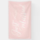Modern Just Married Wedding Reception Banner is a simple pink wedding party banner for your wedding reception party in Lake Tahoe or anywhere with mountains.