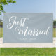 Modern Just Married Wedding Reception Banner is a simple boho blue wedding party banner for your wedding reception party.