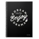 "Enjoy Korean Drama, All Day, Every Day. 24/7" NotebookGrey. Graphic is in a Dark Gunmetal GreyWhite Shade on a black background. Heart is purple. Both colours are editable by going into the Edit Design Tool.