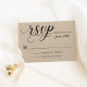Modern and chic rustic kraft paper and black wedding RSVP cards feature a stylish black typographic design with bold calligraphy script accents and elegant custom text that can be personalised with your response due date.